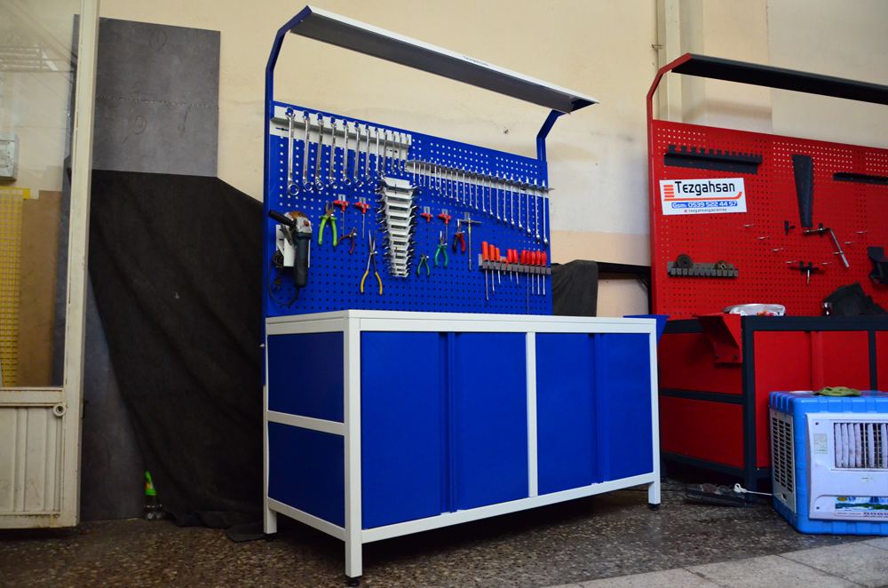 Örneğin, Tezgahsan’ın raflı ve takım asma panolu modelleri, düzeni kolayca sağlamanıza yardımcı olur.